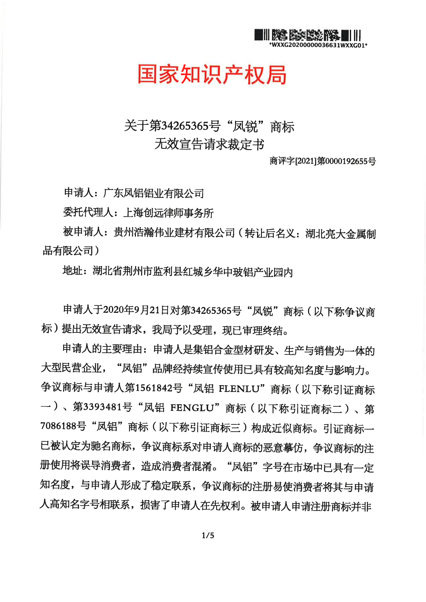 博尔塔拉辉知队 | 国家知识产权局:“凤锐”商标无效