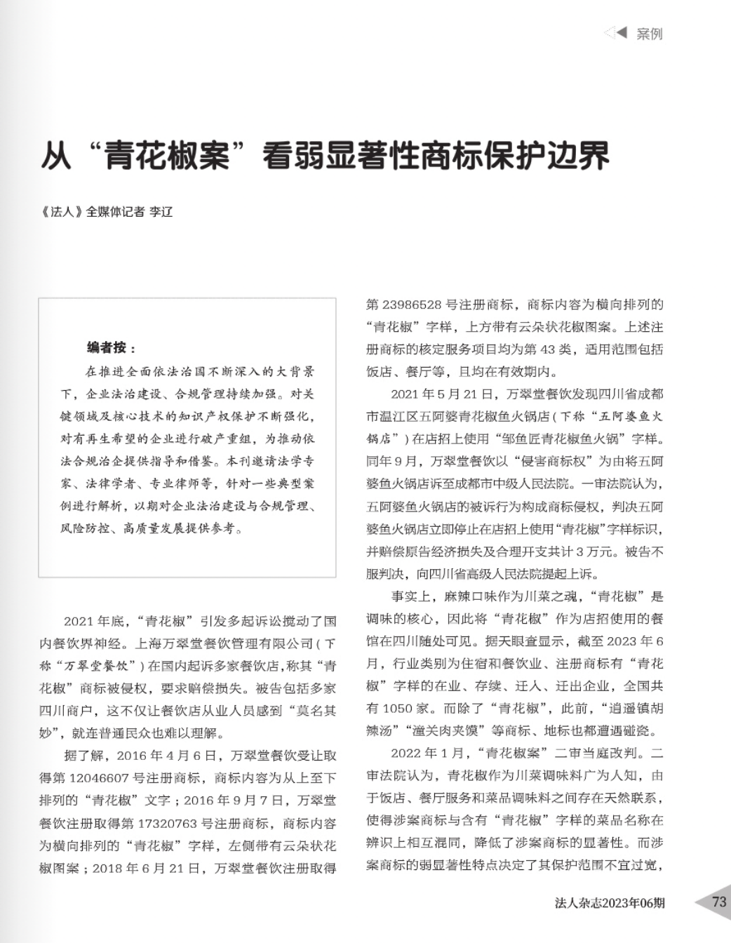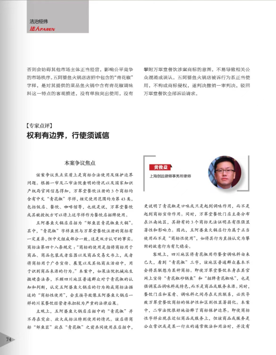 博尔塔拉辉知简讯 | 辉知队黄俊益律师应“法治日报”旗下杂志邀请,就“青花椒”案发表专家点评