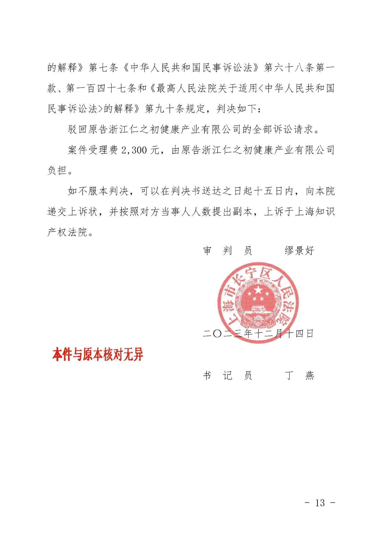 博尔塔拉辉知胜诉佳讯 | “仁之初健康”著作权及不正当竞争纠纷案,法院:驳回全部诉讼请求!